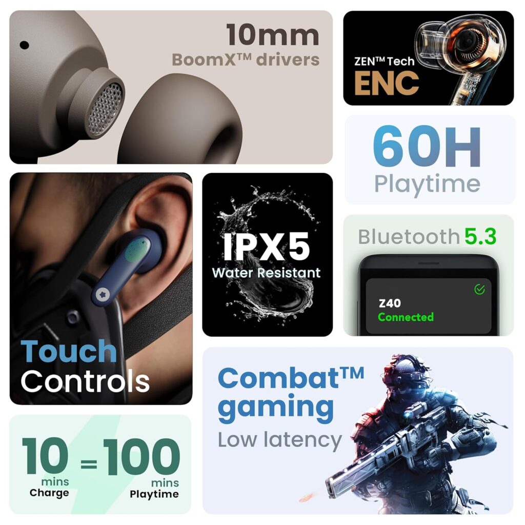 While it may not offer premium ANC or audiophile-level sound tuning, it excels in battery life, call clarity, and affordability. For its price segment, the Z40 is a smart and practical choice.